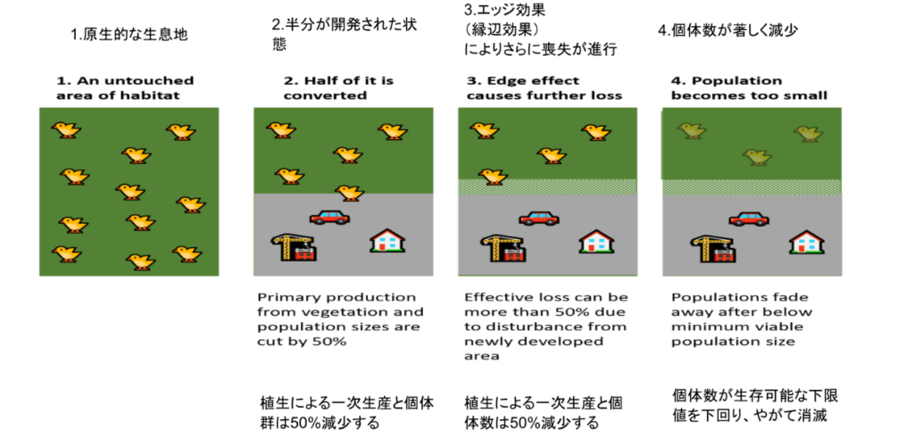 生息地の喪失により以下に示すような結果となる。
